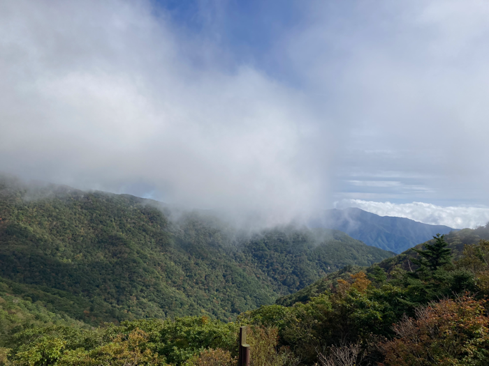 비가 오는 산을 걷다 보면 축축한 진흙에 한 발 한 발 박아가면서 미끄러지지 않게 조심하며 머리를 위로 올리면 눈두덩이와 이마 위로 빗방울이 뚝뚝 떨어지는 것을 느낄 수 있다. 지리산은 달랐다. 높은 고도에 걸맞은 지리산은 내가 산을 타고 있는 건지 구름 속을 걷는 건지 분간이 안 됐다. 하늘에서 내려오는 비가 아닌 그저 존재하는 비. 앞으로 나아가는 나의 옆에 계속 존재하면서 시작과 끝이 있는 것이 아니라 그저 그 공간에 계속 살아있는 비. 구름의 바닷속을 헤엄치며 나아가 한 발 한 발 내디뎠다.