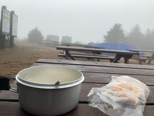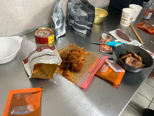 아침에 슬며시 밀려오는 냉기에 눈을 떴다. 아침 퇴실 시간이 임박했다는 것을 깨닫고 짐을 추려 나왔다. 발은 부어올라서 도저히 정상을 갈 수 없을 지경이었다. 장터목 대피소 숙소를 취소하고 쉼터지기 아저씨의 말을 따라 평탄한 길로 내려가기를 마음먹었다. 그래도 밥은 먹고 가야 하니 지리산 온다고 구매한 버너를 사용해 라면을 끓여 먹는다. 다쳐도 할 건 다 하는 의지의 한국인 나야 나.