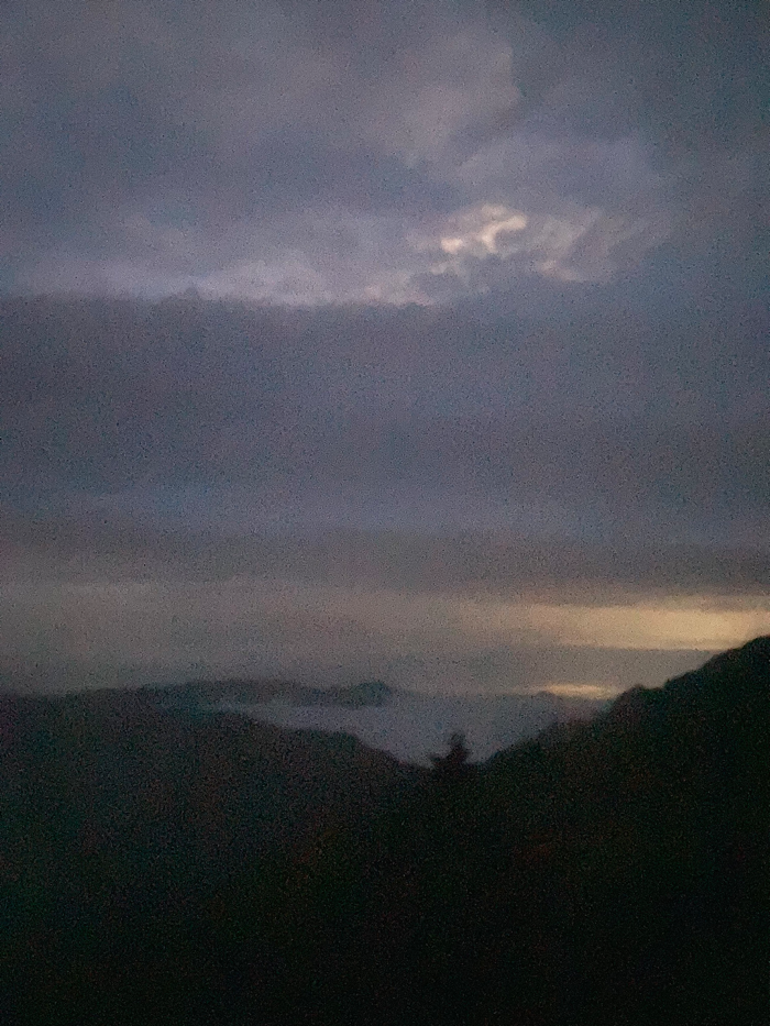 대피소가 열리자 원래는 판매하지 않지만 붕대 하나를 받을 수 있었다. 발을 감싸고 따뜻한 옷으로 갈아입고 숙소로 들어갔다. 아무래도 느낌이 좋진 않았다. 발에서 그렇게 뚝 소리가 나는 것을 들은 것도 처음이었다. 걱정이 산처럼 쌓였으나 어쩌겠나, 일어난 일은 일어난 일인걸. 날은 갑자기 너무 좋아져서 푸른 하늘이 나타났다. 운해 위에 서 있고 눈앞에는 끝없는 산맥들이 펼쳐졌다. 그래도 이곳까지 온 나 자신이 대견했다. 그리고 이 상황이 마냥 웃기기 시작했다. 여기까지 와서 발을 삐다니. 대단하다 정말. 숙소에서 쉬다가 배가 고파 나오니 다른 사람들이 저녁 식사를 준비 중이었다. 부상당한 나를 안타까워한 한 아저씨는 밥 먹으라며 고기를 구워주셨다. 고기라니....한국인들은 얼마나 더 대단해지려는 걸까. 이 산까지 고기를 가져와서 굽는다니 그저 리스펙이다. 맛있게 먹고 감사한다고 얘기하고 이른 잠을 청하러 갔다. 한 아주머니와 여자 숙소 전체를 사용했다.
