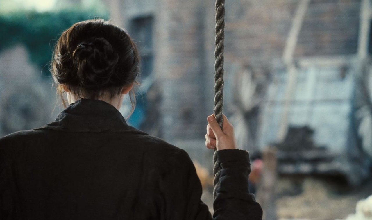 카메라 - 풀 쇼트에서 바스트 쇼트까지 줌 인을 한다. 엘리자베스의 행동에서 표정으로 시선이 좁혀진다. 엘리자베스가 무언가를 생각하고 있다는 정보와 함께 엘리자베스의 감정을 추측하게 만든다.