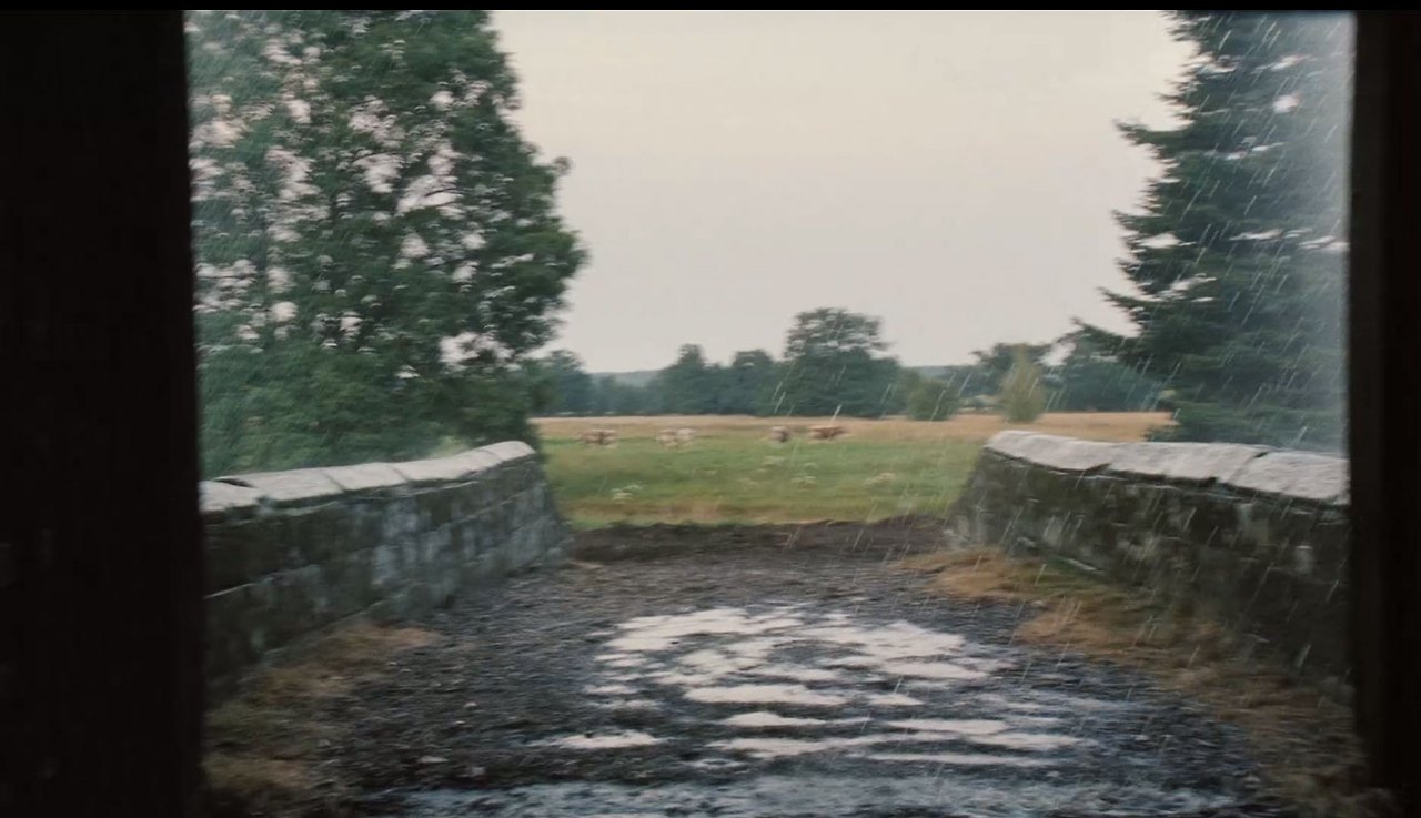 카메라 - 오른쪽으로 팬 해서 360도 회전한다. 한 쇼트에 그네를 타고 있는 엘리자베스의 시각과 일치하게 뜰 안과 바깥 모습을 관객들이 볼 수 있다. (시점 쇼트)