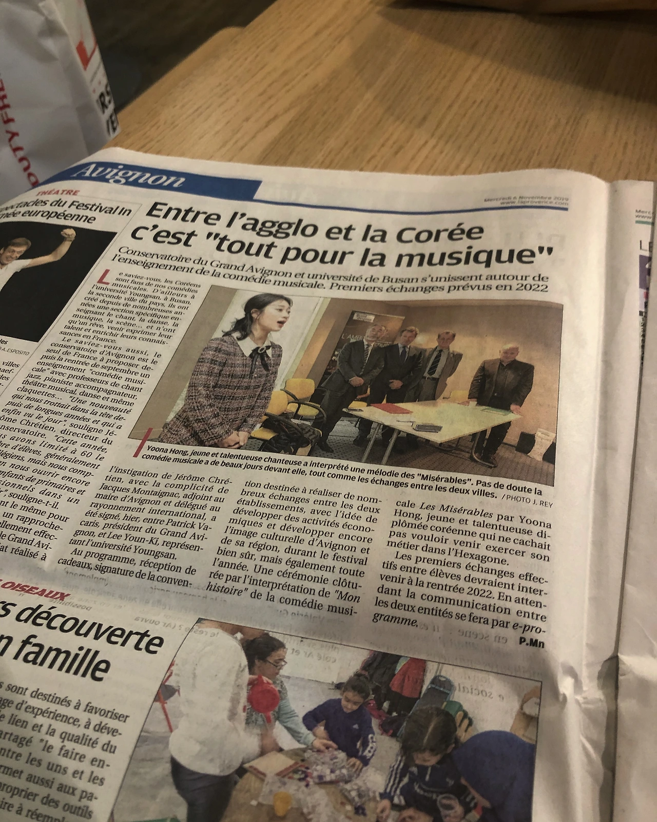 마르세유(Marseille)로 가기 위해 이른 아침 역에서 교수님과 다른 일행분을 기다리는데 갑자기 누가 큰 소리로 "유나야!! 대박이다 대박!!!" 하면서 웬 종이들을 들고 오는 게 아닌가.. 나는 저게 뭐지? 하고 그쪽으로 향했고, 교수님이 이건 우연이 아니라며 잔뜩 흥분한 상태로 나에게 무언가를 보여주시는데 그것은 다름 아닌 프랑스 남부 대표 신문사인 프로방스 신문이었다. 그런데 그게 왜? 자세히 보니 그 신문 앞면에 내가 대문짝 만하게 나온 것이었다. 심지어 찾아보니 사이트 기사에도 실렸었다. 정말 상상도 못 했던 일이었다. 왜냐하면 그 축하행사는 몇 명의 소수만 참석하고 나는 노래만 불러주고 빨리 끝나는 자리라고 들었었기 때문에. 그런데 막상 가보니 사람들도 꽤 있었고 내가 노래 부르니 밖에서 사람들이 들어오면서 인터뷰도 하고 사진도 찍어가고 했었던 기억이 난다. 그런데 그게 신문에 나올 줄이야... 마치 프랑스가 나에게 환영한다는 인사를 하는 것만 같았고, 두고두고 추억으로 남기기 위해 신문을 여러 장 샀다.