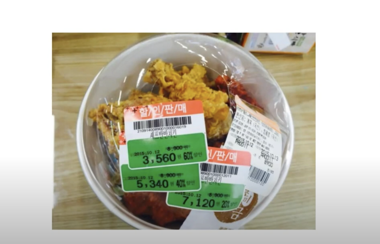 늦은 시간에 마트를 갔을 때 사진처럼 위의 마감 세일 하는 상품들을 보신 적 있으신가요? 그리고 왜 이런 세일을 하는 것일까요? 이유는 유통기한이 오늘까지인 치킨을, 내일 판매할 순 없기 때문입니다.