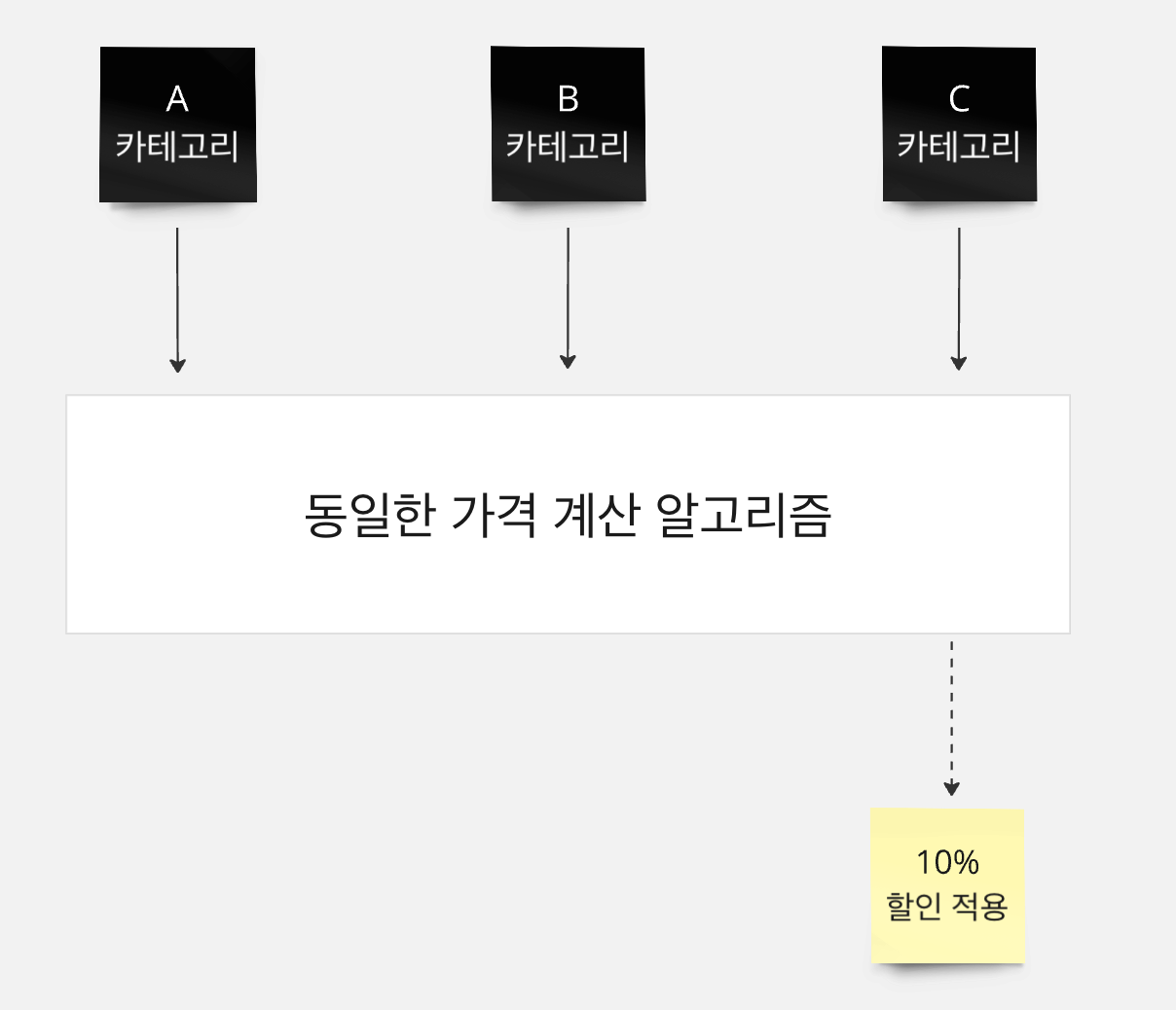 기본적으로 저희 제품에서 할인은 '카테고리별 가격 차별화 전략' 입니다. 원래는 카테고리별로 다른 가격 체계를 사용하지 않았는데요. C 카테고리에 들어온 유저들은 A/B 카테고리에 비해서 구매할 니즈가 낮다고 판단하여 10% 할인 정책을 적용했었습니다. 이를 통해서 C 카테고리 유저들의 구매 가능성을 높이고, 총 매출을 더 키울 수 있다고 판단했던 거죠.