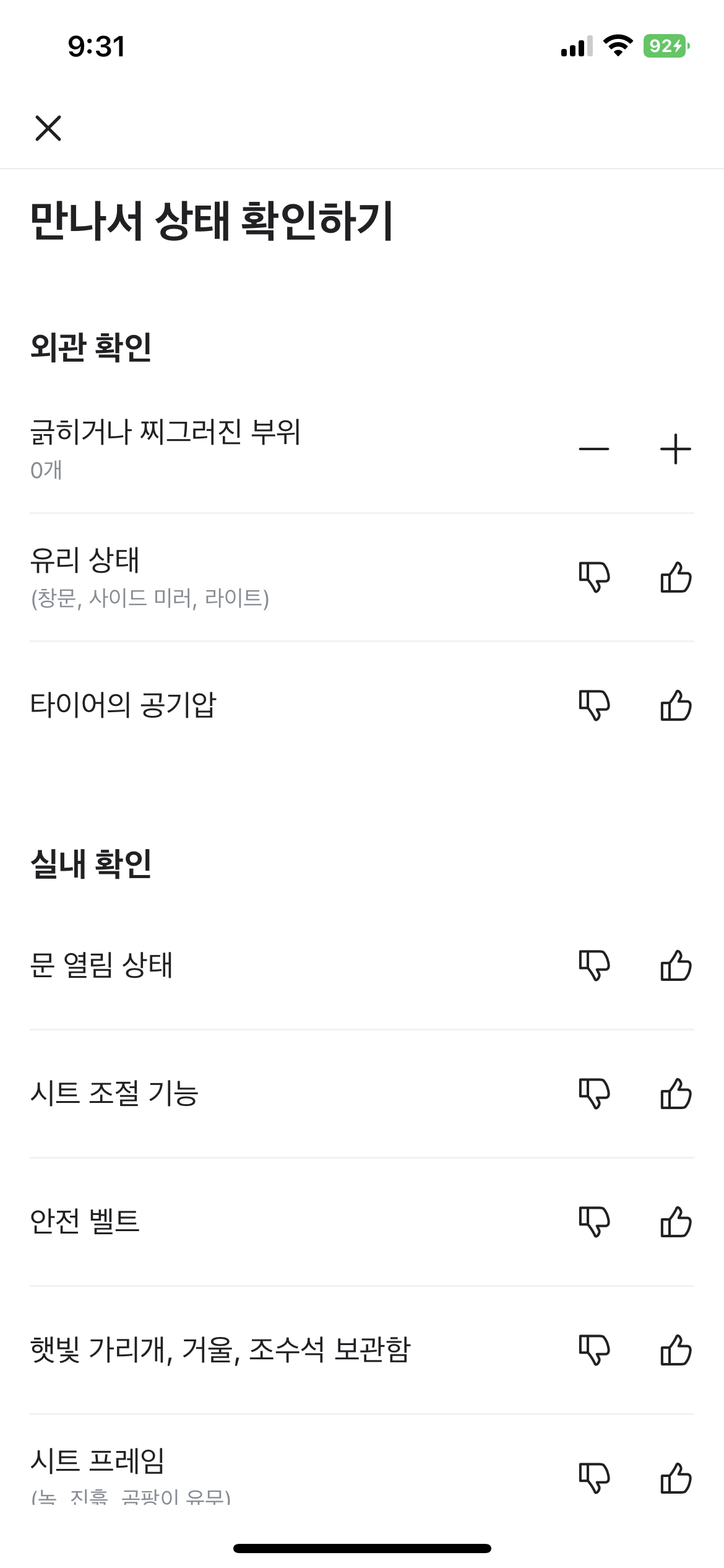 반면 중고차 거래에서는 거래 성사를 유도하기 보다는 체크 리스트, 후기 보내기 등 거래에 대한 신뢰감을 주고 불안감을 낮추기 위한 기능들이 보여요.