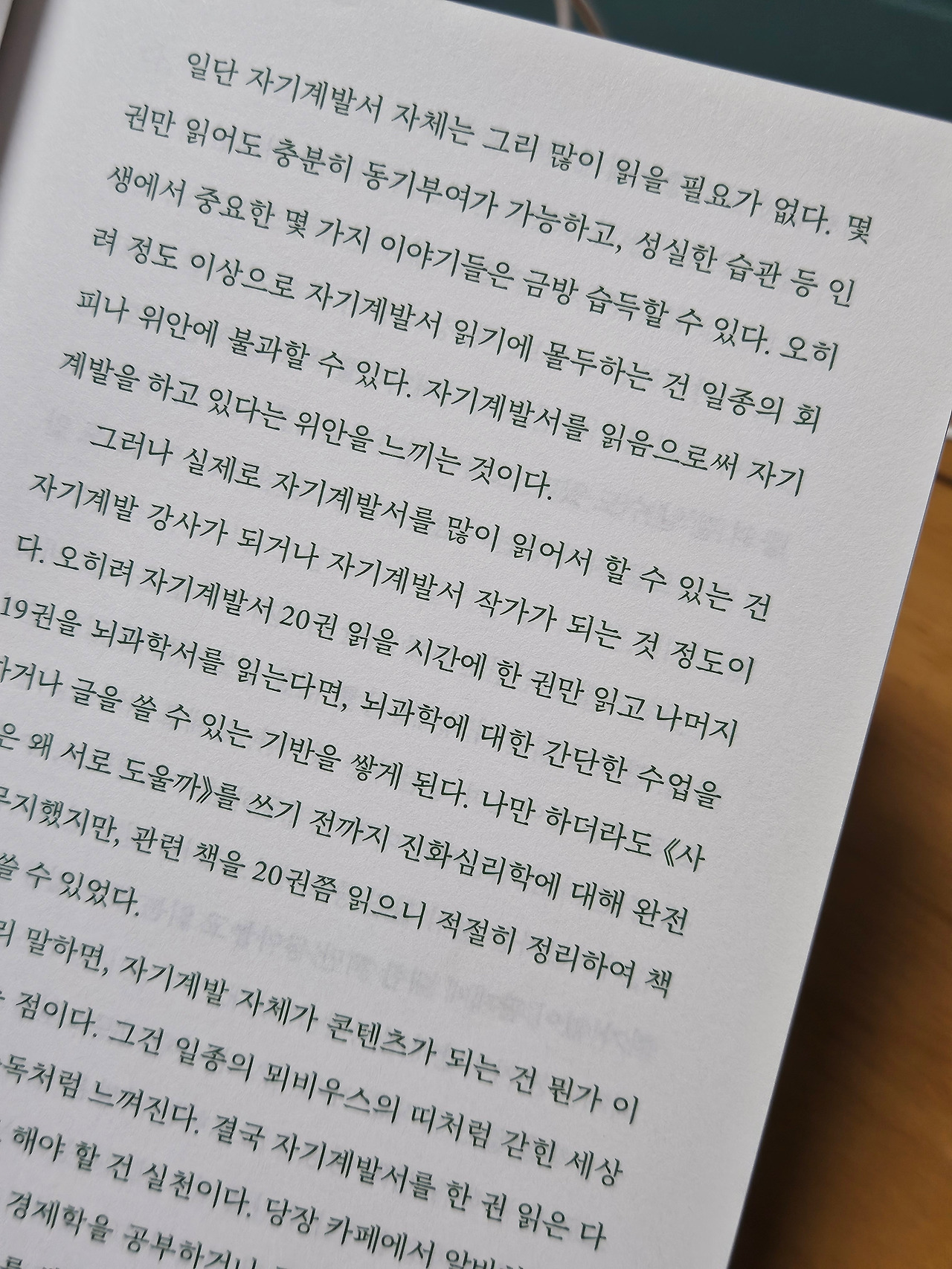 그런데 자기계발서를 읽으면서 자기계발서를 많이 읽지 말라는 글귀를 봐서 적잖이 충격적이었다.