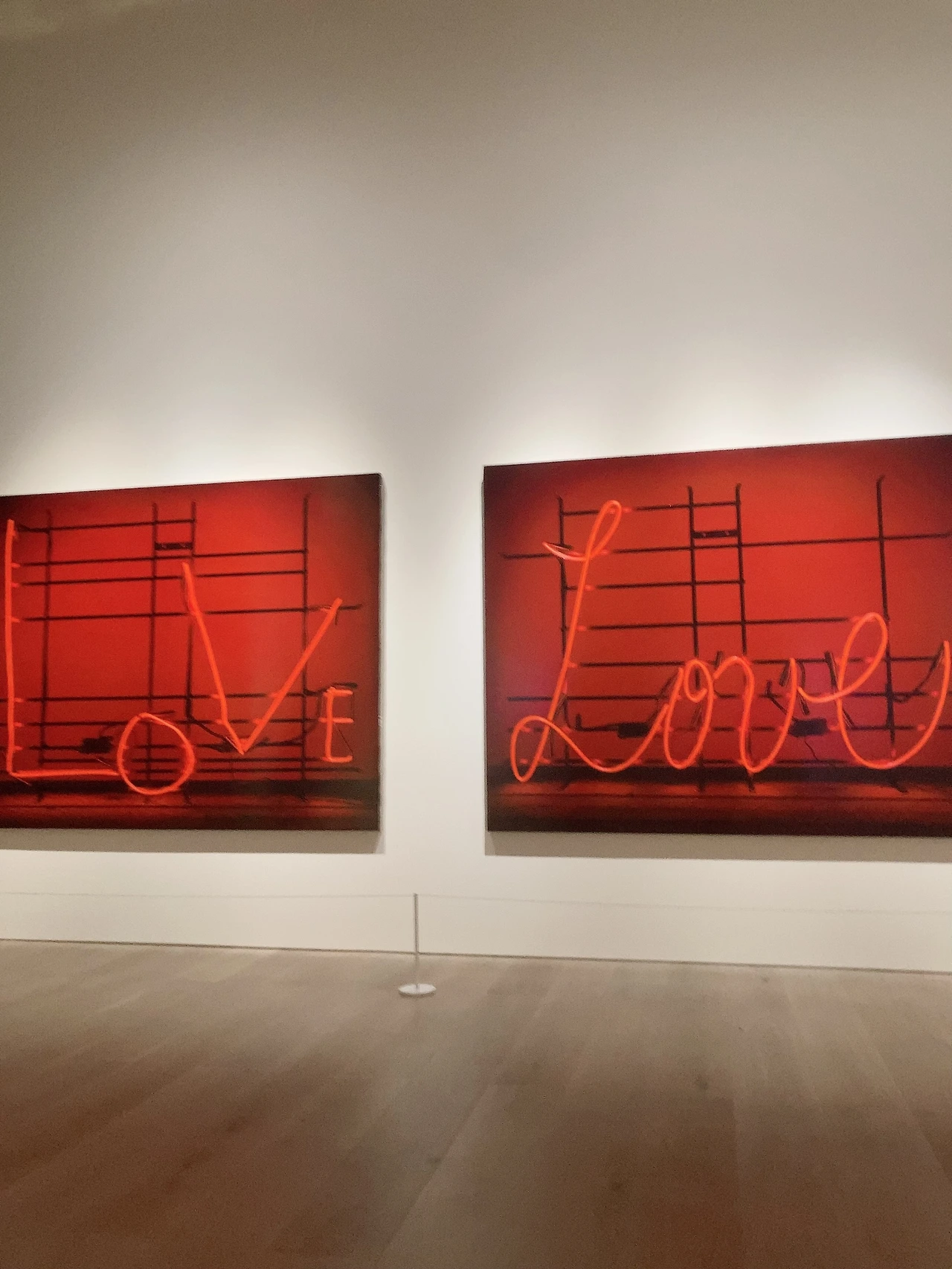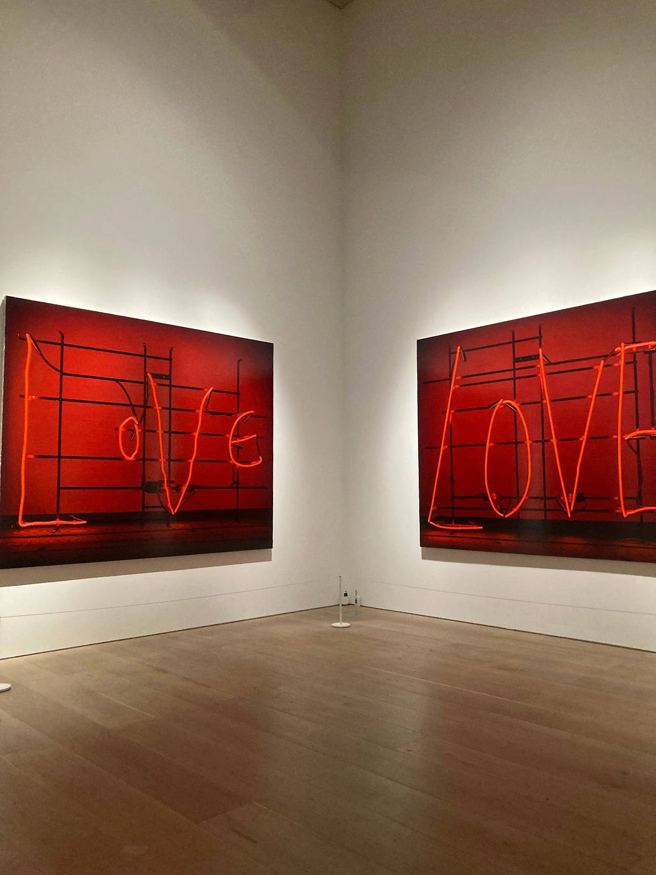 붉은 바탕에 네온관으로 LOVE라는 글씨가 쓰여진 이 다섯 개의 작품은 얼핏 봤을 때는 사진처럼 보이지만 가까이 다가가서 보면 회화작품이었어요. 전 세계 곳곳의 다양한 사랑의 모습을 존중한다는 메시지를 담고 있는 작품이라고 하네요.