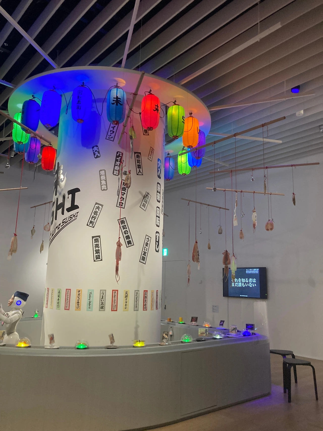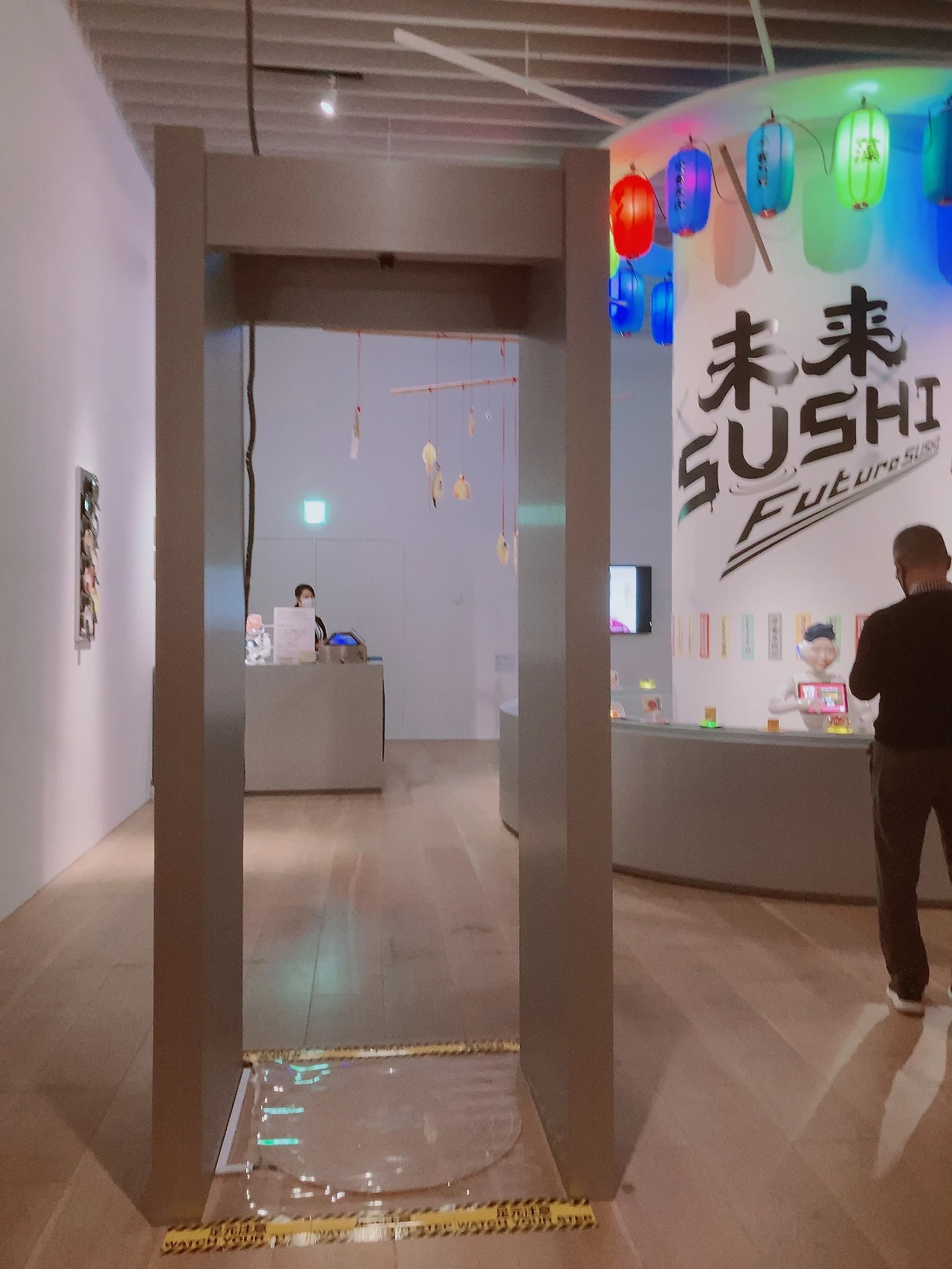 <미래스시> 라는 타이틀의 설치미술작품인데요, 음... 유니크하다고 하기에는 저에게는 좀 요란해서 용량초과였던 작품이네요. 로봇이 초밥을 제공해 주는데 뭐 먹고 싶은 초밥은 하나도 없습니다.
