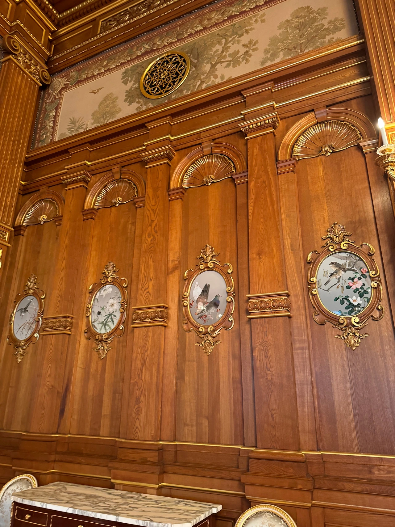 24장의 천장화가 있는데요, 사냥에서 볼 수 있는 동물과 식물들을 그린 그림이라고 해요.