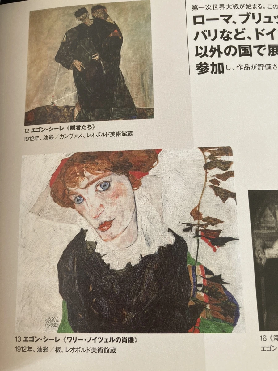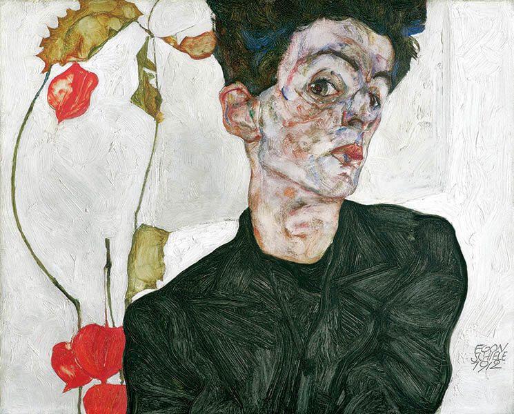 실레는 100점이 넘는 본인의 자화상을 남긴 화가입니다. 자화상 속의 실레는 마치 야생의 한 마리 늑대처럼 느껴지기도 해요. 불쌍할 정도로 깡마른 몸, 때로는 풀린 눈, 때로는 강렬한 눈빛. 때로는 옷을 입고 있고, 때로는 전라이고, 때로는 붉은 성기만 드러낸 반라의 모습이기도 하지요.