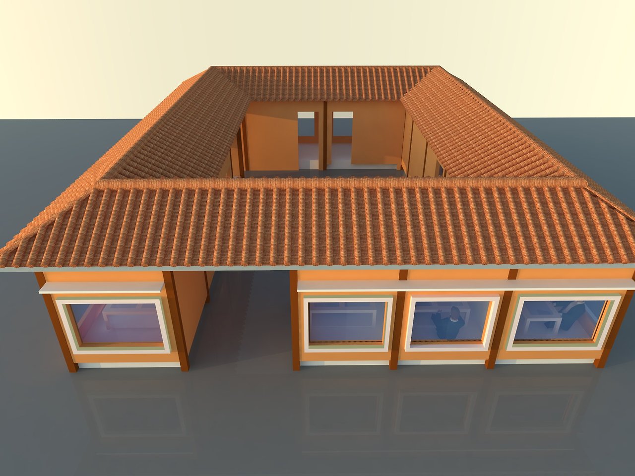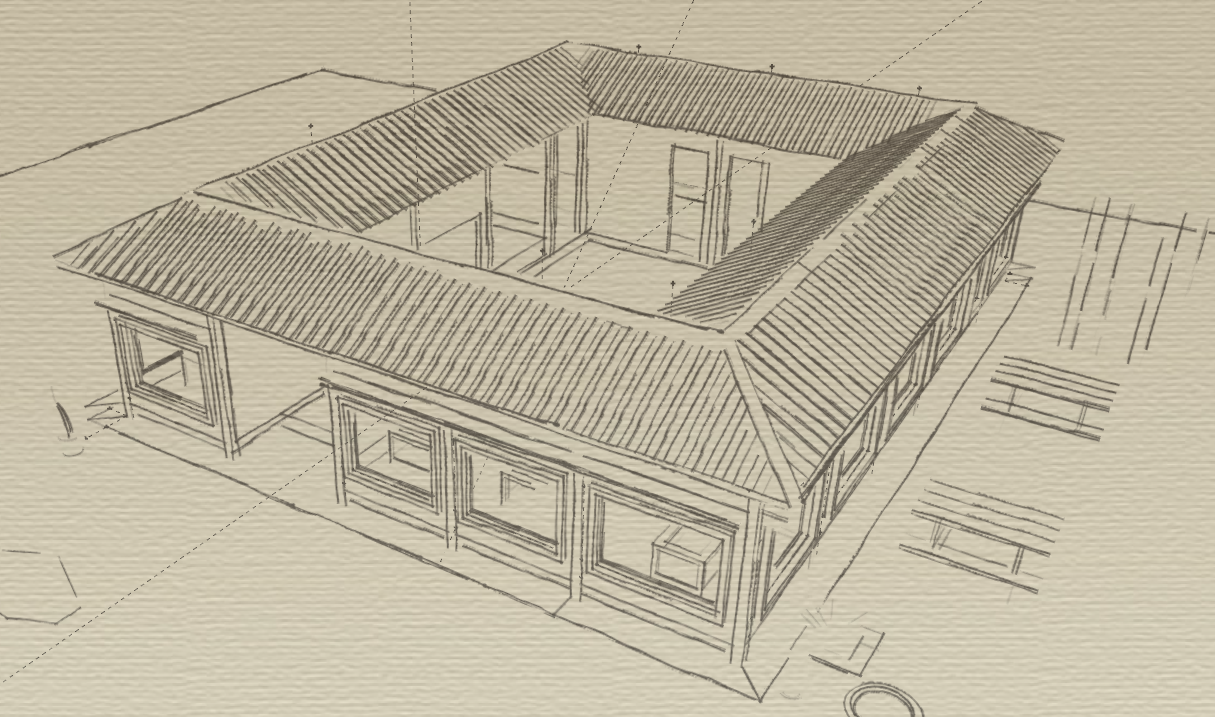 단점이라고 하면 '일자형'에 비해 건물 배치 면적이 넓어지므로 토지 매입 부담이 있을 수 있고, 공사비에 대한 증가도 고려해야 합니다. 도시지역에서는 선뜻 시도해보기 어려운 배치 형식입니다. 중정에 면한 각실들은 일조를 받기가 쉽지 않을 수도 있는데 단점을 보완하려면 층고 높이를 최대한 낮춰서 단면을 고려해야 합니다.