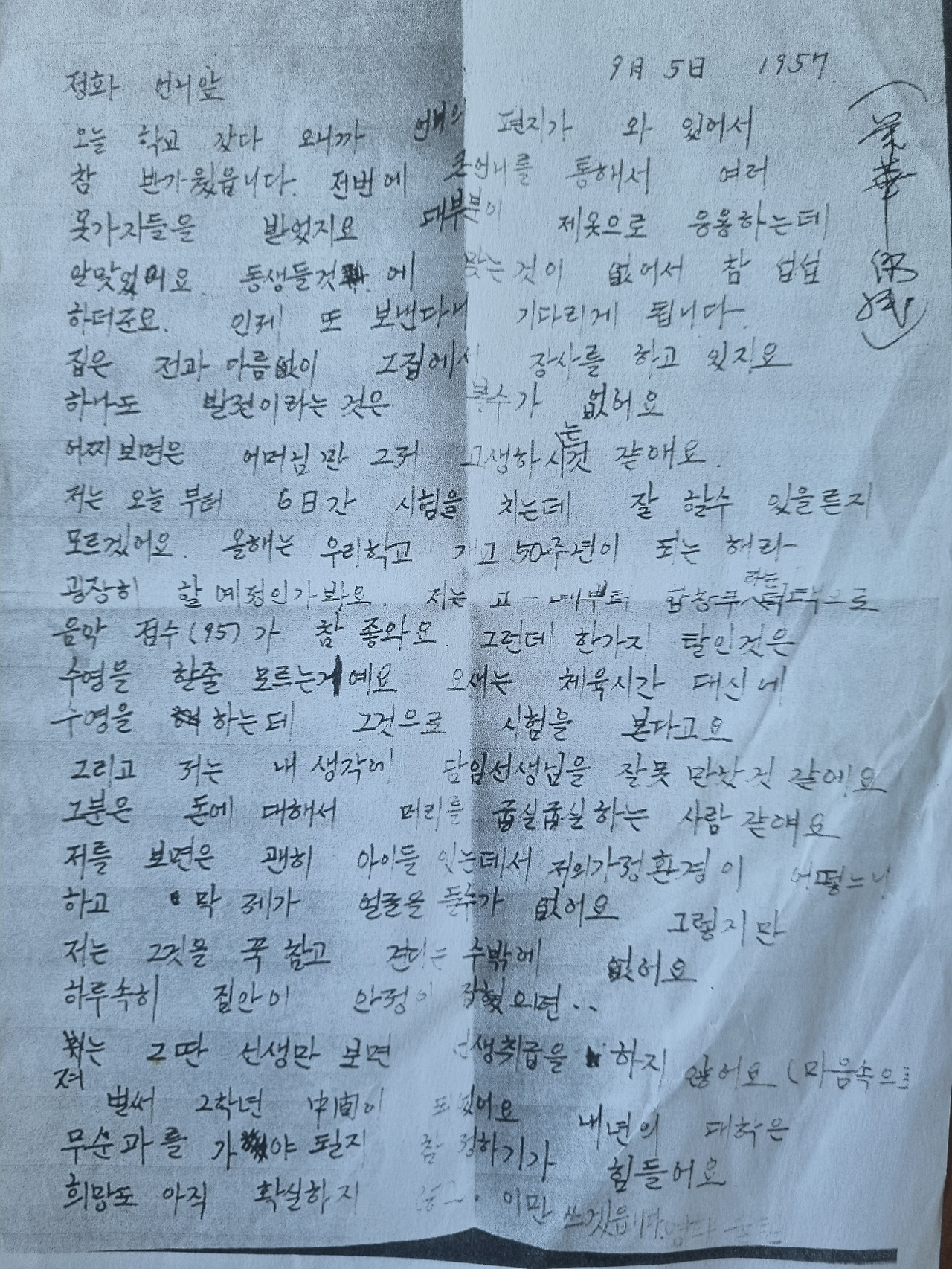 엄마는 또 1957년도에 엄마의 언니에게 쓰신 편지를 보여주셨다.