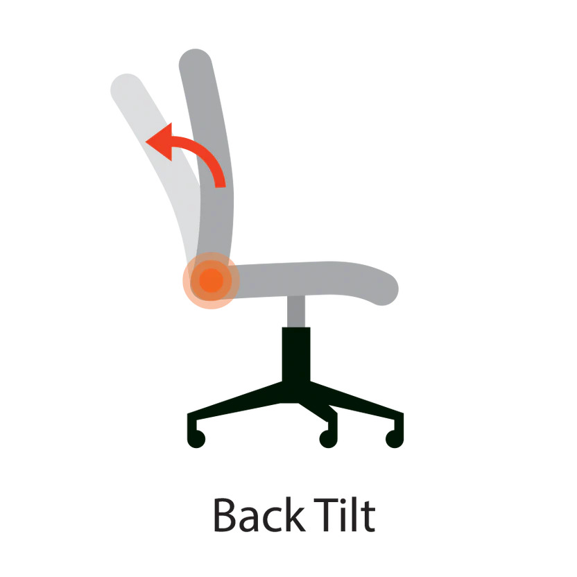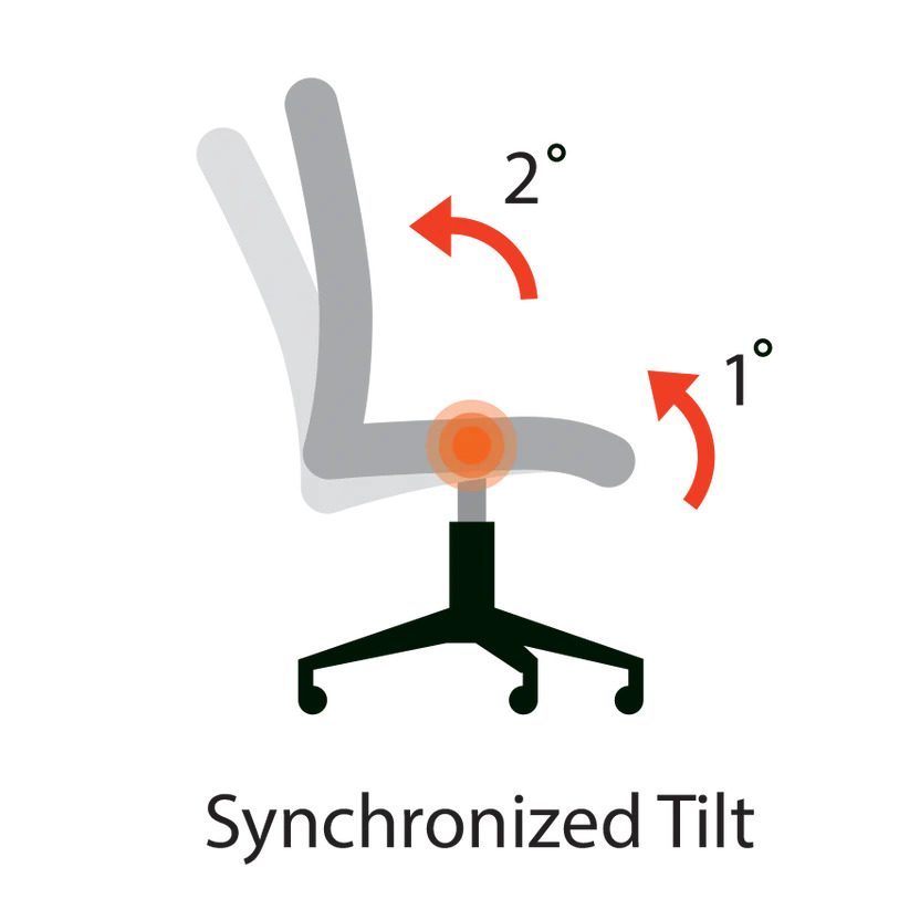 좌판은 움직이지 않고 등받이만 뒤로 기울어지는 구조입니다. 좌판이 고정되어 있기 때문에 다리와 무릎은 항상 안정적으로 바닥을 지지하지만, 움직임의 범위는 크지 않습니다. 단순하고 직관적인 틸트 방식이라 소형 오피스 체어나 교육용 의자에서 많이 볼 수 있습니다.