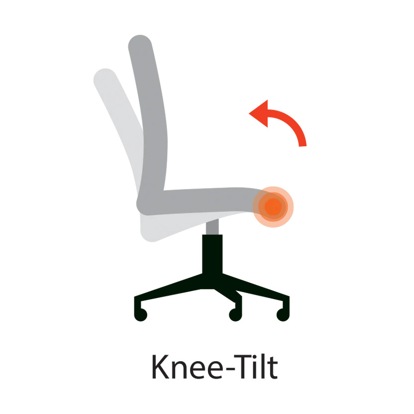 좌판 앞쪽 가까이에 회전축이 있어, 틸팅 시에도 발이 바닥에 고정된 채 움직임이 일어납니다. 무릎을 중심으로 등받이가 젖혀지는 구조라 자연스럽고 안정적인 자세를 만들어줍니다. 중급 사무용 의자에서 자주 사용되며, 일과 휴식을 자연스럽게 오갈 수 있어 효율적인 구조입니다.