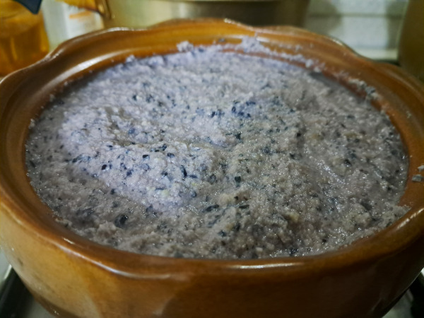 또 한 번 물 반 컵을 믹서기에 부어 남아있는 콩물을 토기나 뚝배기에 부어준다.