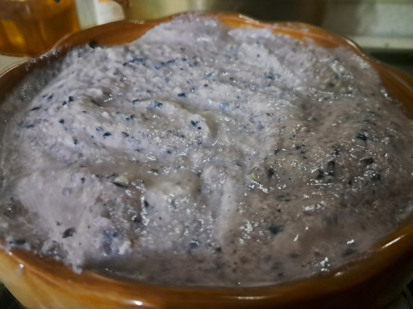 불을 껐어도 이렇게 부풀어오를 때는 양방향으로 저어주면 가라앉는다.