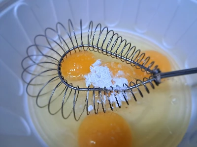 계란 4개에 감자전분 1/3 티스푼과 소금 1/3 티스푼 넣고