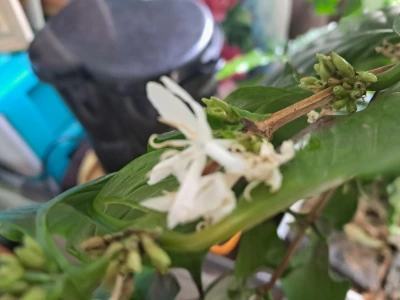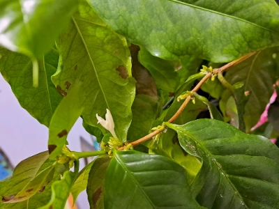 2024년 12월에 커피나무에서 꽃몽우리가 생겼다. 그 모습을 보고 무척 흥분했다.