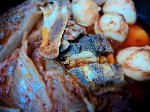 물 2,000CC, 고춧가루 1스푼(매운 거 좋아하면), 맛술 반 컵,