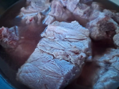 1. 돼지등뼈를 찬물에 담가 세척하고 10분간 담가 1차로 핏물을