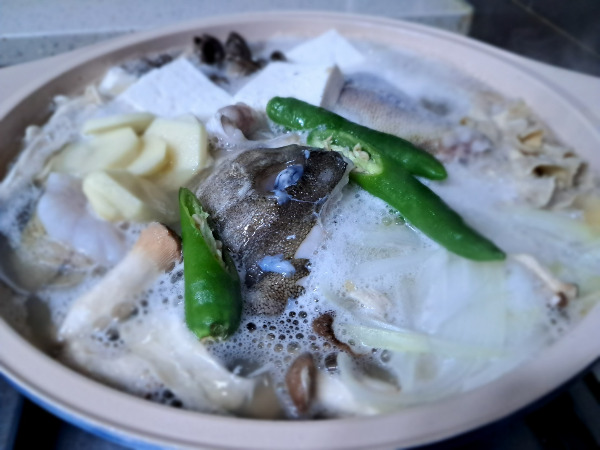 식초를 넣지 않아도 전혀 비리지 않다. 대구버섯탕 비법은 육수에 있는 거 같다.