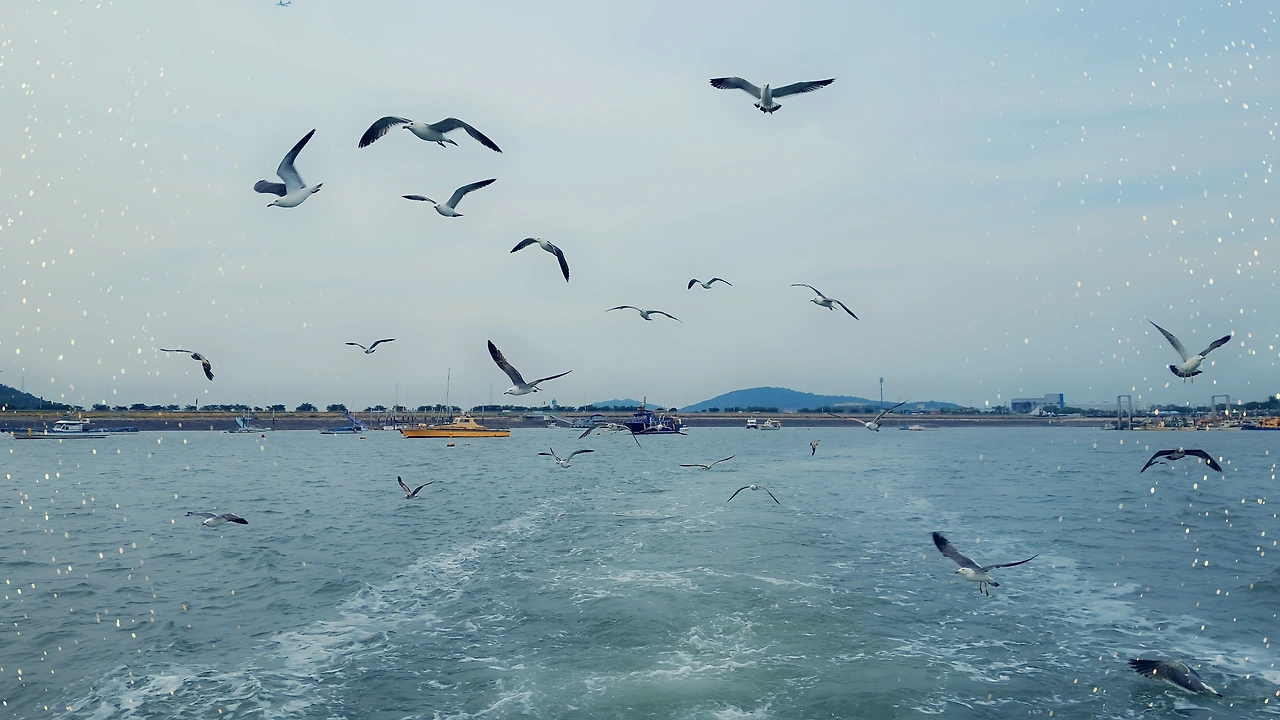 배를 따라오는 갈매기들과의 30분 항해!