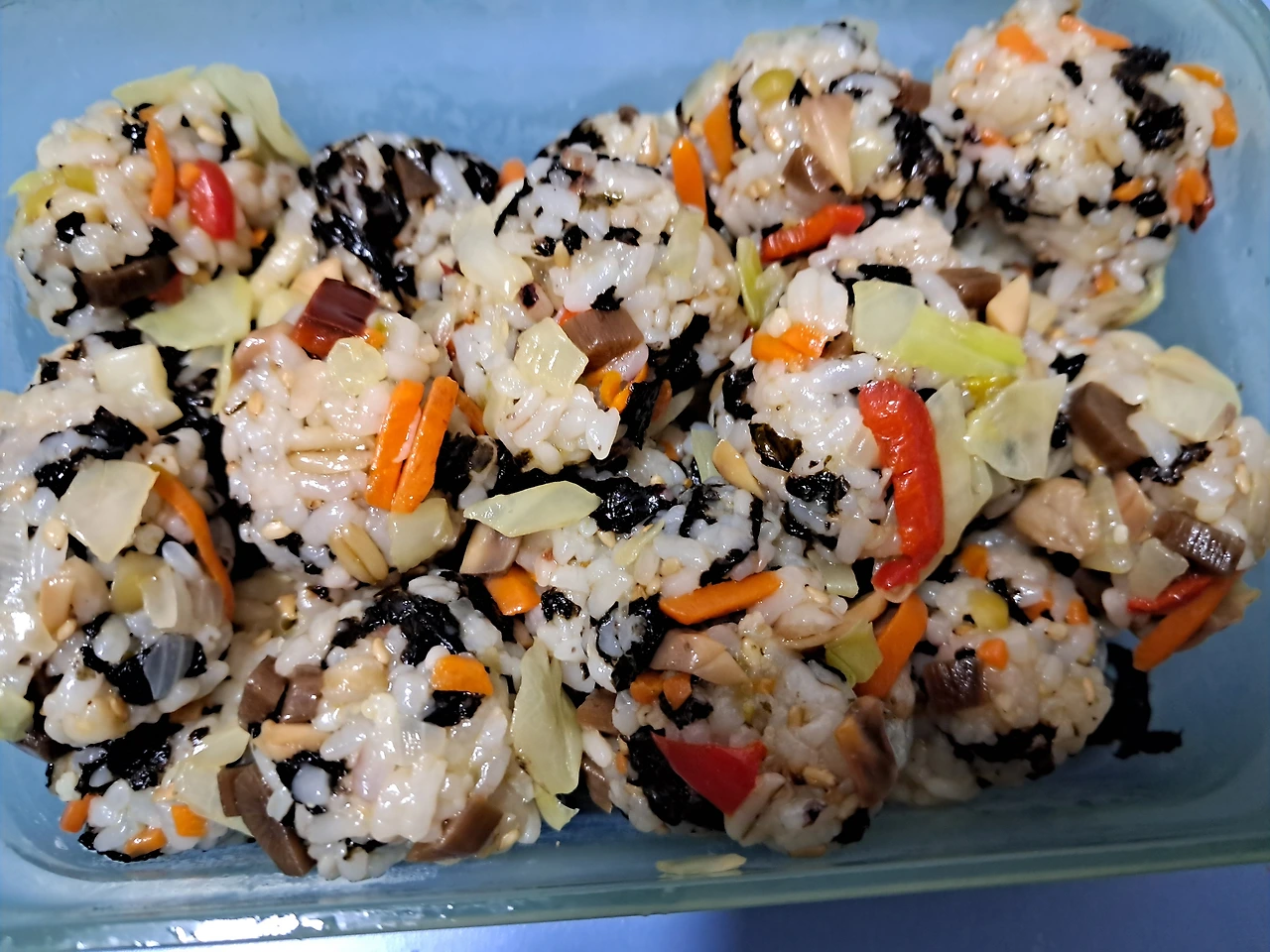 어제 남긴 눌은밥을 싸가려니 좀 그래서 야채주먹밥을
