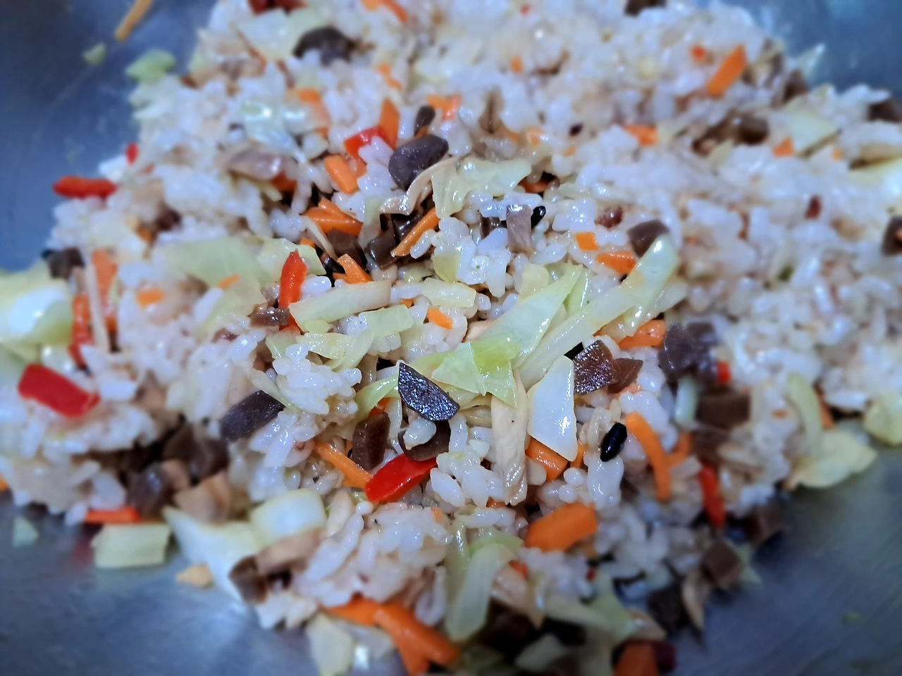 우엉조림도 다져 넣었다. 잡곡밥이라 찹쌀이 섞어 찰지다.