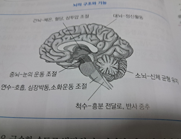 * 연수⮕ 호흡, 심장박동, 소화운동 조절