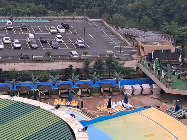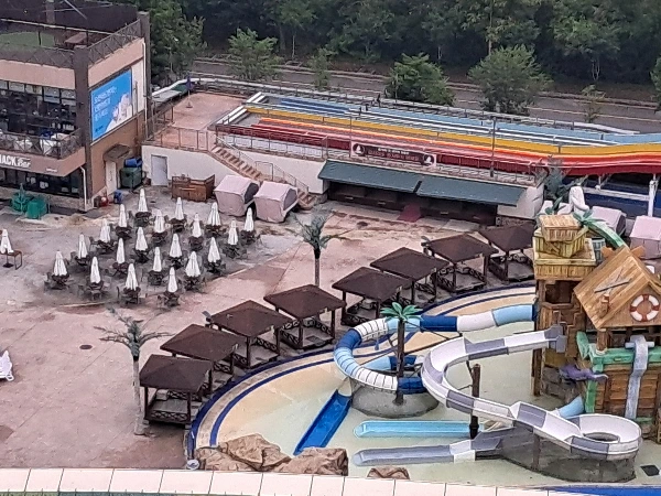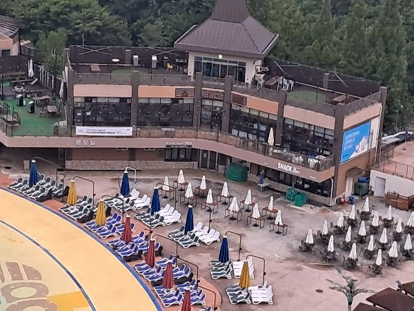 소노벨 물놀이장이 산속에 자리 잡았다. 어제 양치하고 물을 입에 담아보니 조미료를 탄 것처럼