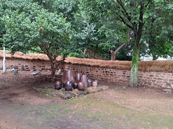 뒤뜰에는 야트막한 담장과 장독대가 있다. 전형적인 한국의 전통가옥의 모습이다.