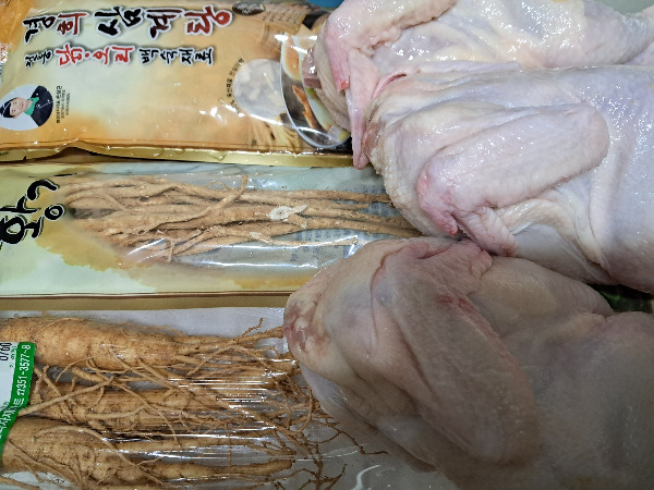 배 안에 든 허파도 떼어낸다. 인삼도 깨끗에 씻어 윗부분은 잘라낸다.