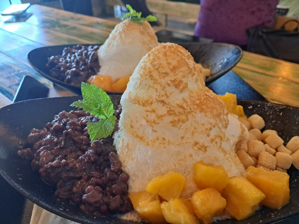 눈꽃 팥빙수는 그냥 먹는 거라는데 나는 옛날 사람이라 옛날 방식으로 섞었더니 다들 놀란다.