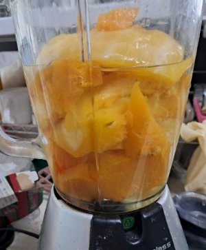 찐 늙은 호박을 믹서기에 넣고