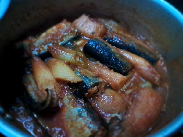 4. 졸여진 국물이 조금 남아 걸쭉해지면 꽁치무조림 완성이 된 것이다.