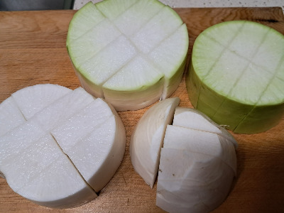 무 1토막은 북엇국에 썰어 넣고 4토막은 무조림하고 1토막은 남겨두었다.