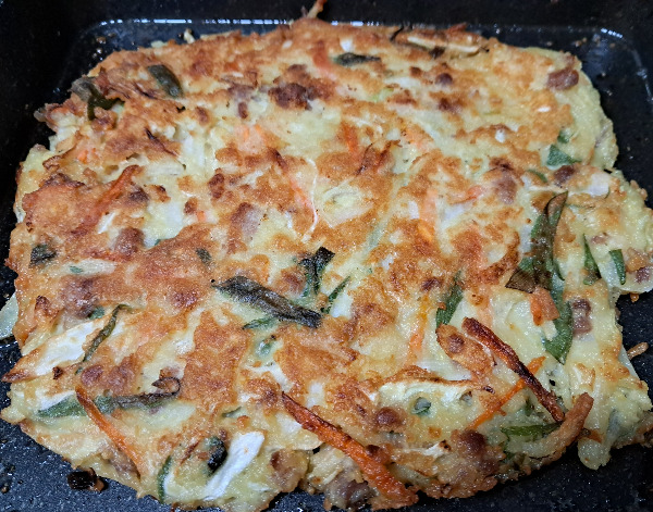 변신한 빈대떡을 먹어보니 녹두빈대떡의 고소함과 감자채와 당근,