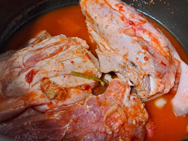포기김치 3쪽, 돼지고기 사태살 400g