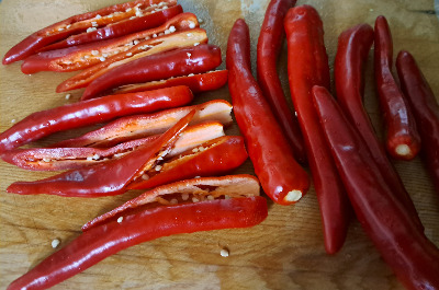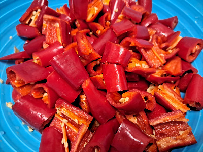 홍고추는 꼭지를 제거하고 주방세제로 한 개 한 개 닦아주고