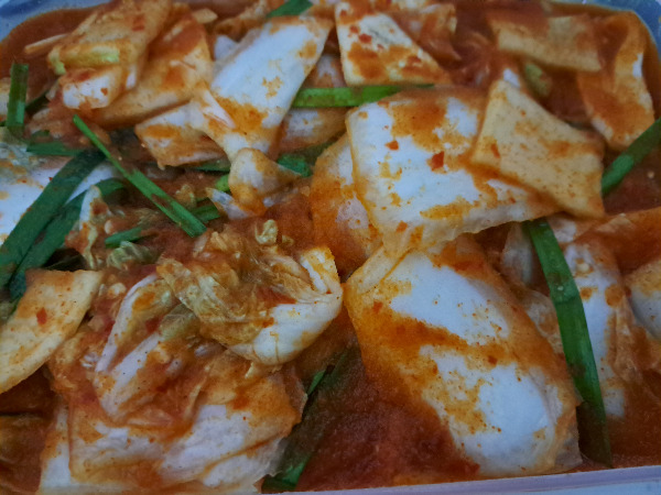 몇 쪽 남지 않은 묵은지를 아끼기 위해 김치를 담그려고 한다.