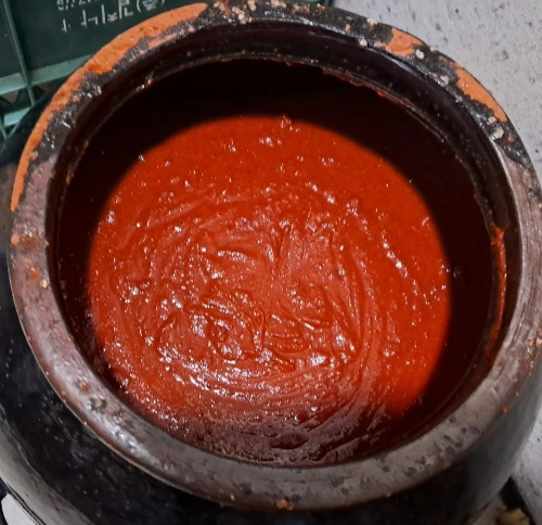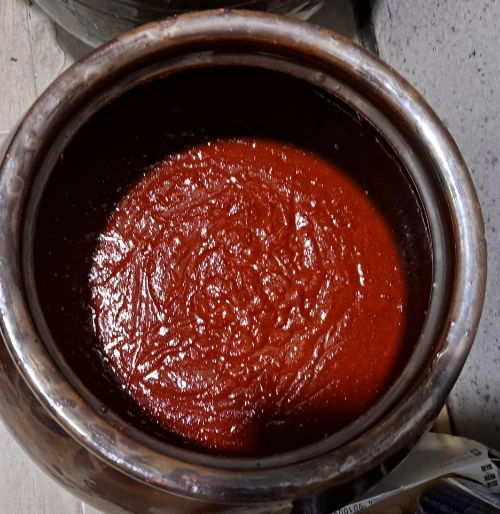 완성된 고추장 모습이다. 적당한 물기로 잘 담가졌다.