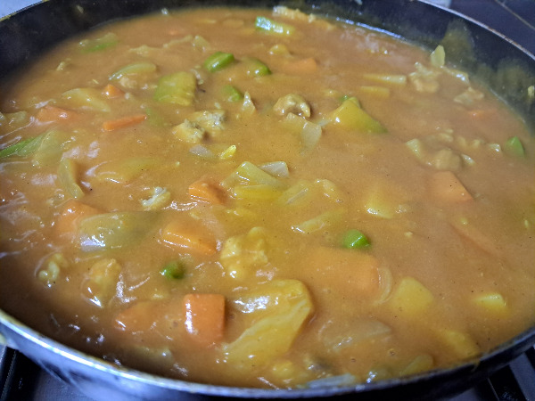 않도록 저어준다. 3분 정도 폭폭 끓어 기포가 생기면 버터 카레가 완성되었다.