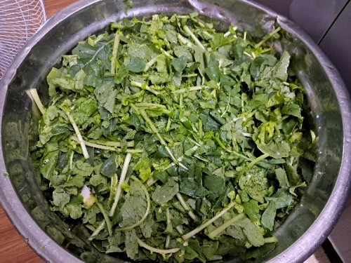 1. 열무는 물속에서 뒤집어 가며 상. 하. 좌. 우로 흔들어 4~5회 맑은 물에 깨끗이 세척한다.