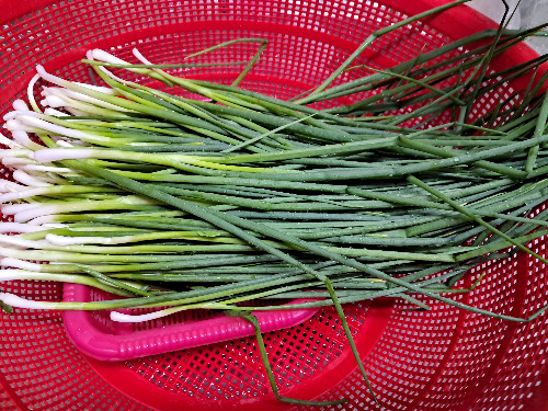 실파는 뿌리에 흙이 혼입이 되었기 때문에 깨끗이 씻어 바구니에 건졌다.
