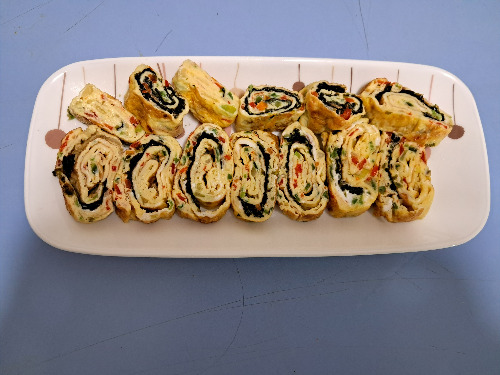 참기름과 참치액젓이 들어가서 비린맛이 나지 않고 맛있는 계란말이가 되었다.