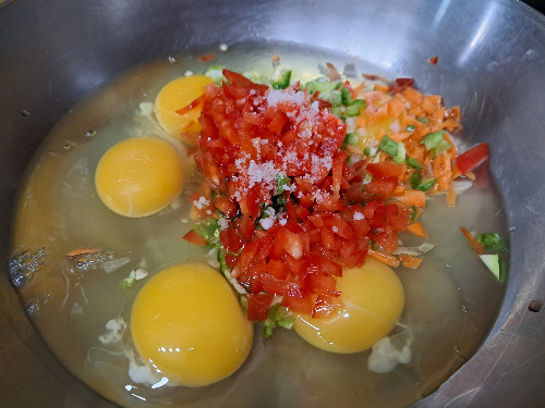 계란은 비타민C가 없으므로 비타민이 풍부한 파프리카와 피망은 비타민 C와 베타카로틴, 식이섬유 등 다양한 영양소가 풍부해 면역력 강화, 피부 미용, 소화 개선, 체중 관리, 눈 건강, 항산화 작용 등 항산화 성분이 풍부해 세포 손상을 예방한다.