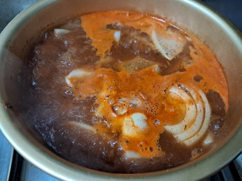 사 먹으면 감치미나 다시다를 넣고 끓인 것에 길들여졌으니 넣을 수밖에 없었다.