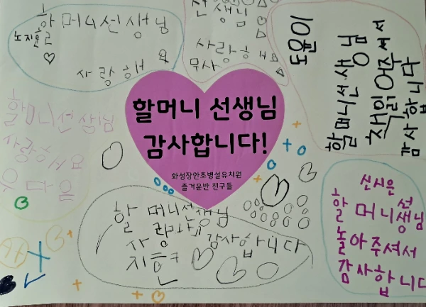 11월 28일 금요일 2025년 병설유치원 근무 마지막 날이다. 보통의 날처럼 출근해서 해야 할 일을 하고 있는데 생일 맞은 아이 축하해 주고 케이크를 자르고 같이 먹었다. 유희실 바닥을 닦고 있는데 담임 선생님이 부르셨다. 아이 중 한 명이 아이들이 쓴 아름다운 편지!두루마리를 노끈으로 묶어 내게 건네주었다. 집에 가서 읽어보라고 해서 바로 읽고 싶었지만 참았다. 가슴이 뭉클했다. 아이들이 삐뚤삐뚤 눌러쓴 글씨! 너무 예쁘고 아름답다. 세상에 이 보다 귀한 선물이 또 있을까? 아이들이 내게 고맙다고 인사도 해주었다. 참 행복한 순간이었다.