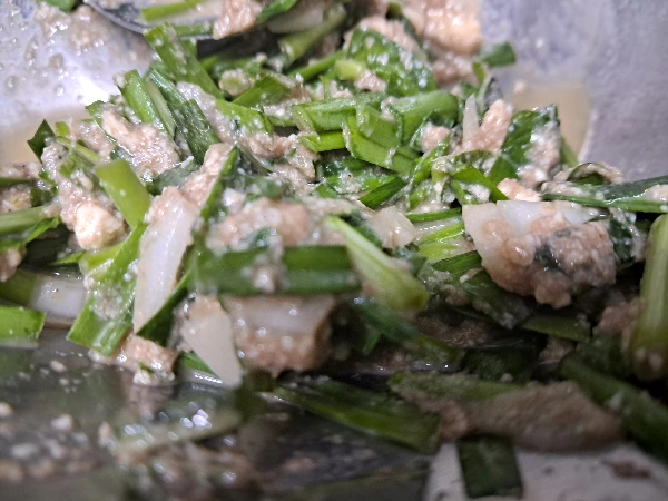 으깬 두부 반 컵, 썰은 부추 1컵, 계란 3개, 혈관청소부인 양파 1/4개,