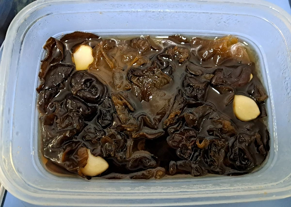 건 목이버섯 35g, 불려서 꼬투리 모레 있는 거 떼어내야 지그럭거리지 않는다.